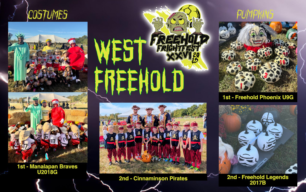 This special one-day event will provide coaches, players and families with a soccer experience that will long be remembered. The Halloween theme will be carried throughout all aspects of the tournament and Freehold Soccer League strongly encourages all that are participating to get into the "spirit of the event.” The tournament is open to U-8 through U-12 travel teams and all games will be played at various sites within Freehold. Each team will play 2 games which will be 55 minutes in length (2 - 25-minute halves and a 5-minute halftime).